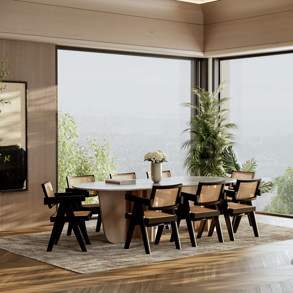 CA Evi’nin tasarım ve uygulama süreci bütüncül bir anlayışla yürütüldü. Açık planlı yaşam alanı, salon ve mutfak arasında kesintisiz bir akış sağlayacak şekilde kurgulandı. Geniş açıklıklar ve balkon bağlantılarıyla doğal ışık iç mekâna taşındı. Malzeme seçimlerinde doğal taş ve ahşap yüzeyler ön plana çıkarılarak sıcak, huzurlu ve zamansız bir estetik elde edildi.
